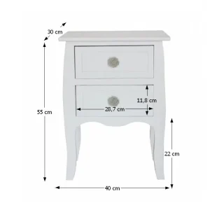 Aceasta piesa de mobilier este foarte eleganta, cu un design clasic. Are doua sertare, o inaltime de 55 cm si picioare inalte (22 cm).