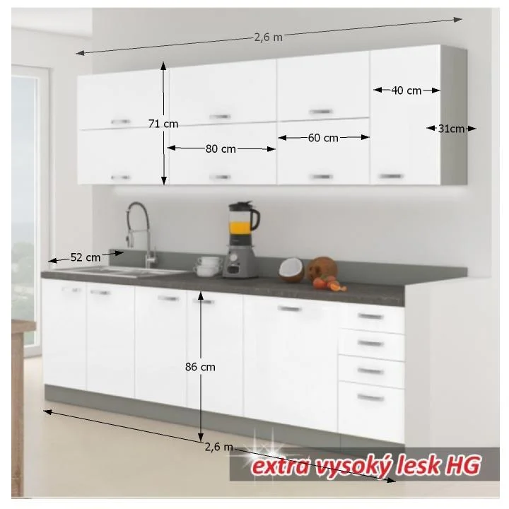 Dimensiunile dulapurilor inferioare (hxA): 86×52 cm