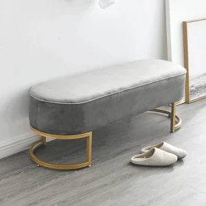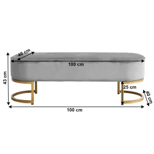 Descriere: Banca de design, catifea gri deschis / crom auriu, MIRILA