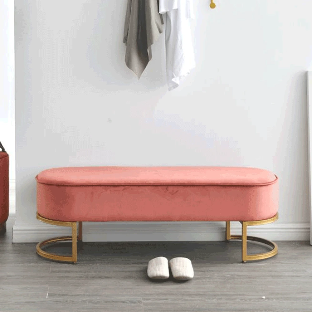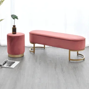 Descriere: Banca de design, catifea roz / crom auriu, MIRILA