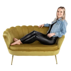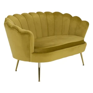 Banca in stil Art-deco, catifea Velvet mustar/crom auriu, NOBLIN