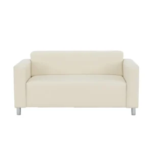 O canapea tapitata, cu 2 locuri, de culoare bej, extrem de eleganta si usor de intretinut.