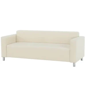 O canapea tapitata, cu 3 locuri, de culoare bej, extrem de eleganta si usor de intretinut.