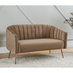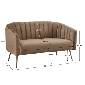 Canapea de design cu 2 locuri, tesatura Velvet maro/gold crom-auriu, BAGY