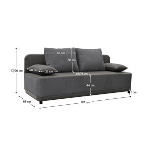 Canapea extensibila, gri, SENTY