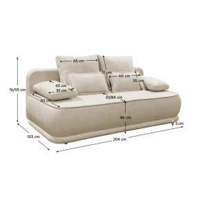 Dimensiuni (lxAxh): 204x103x76/95 cm