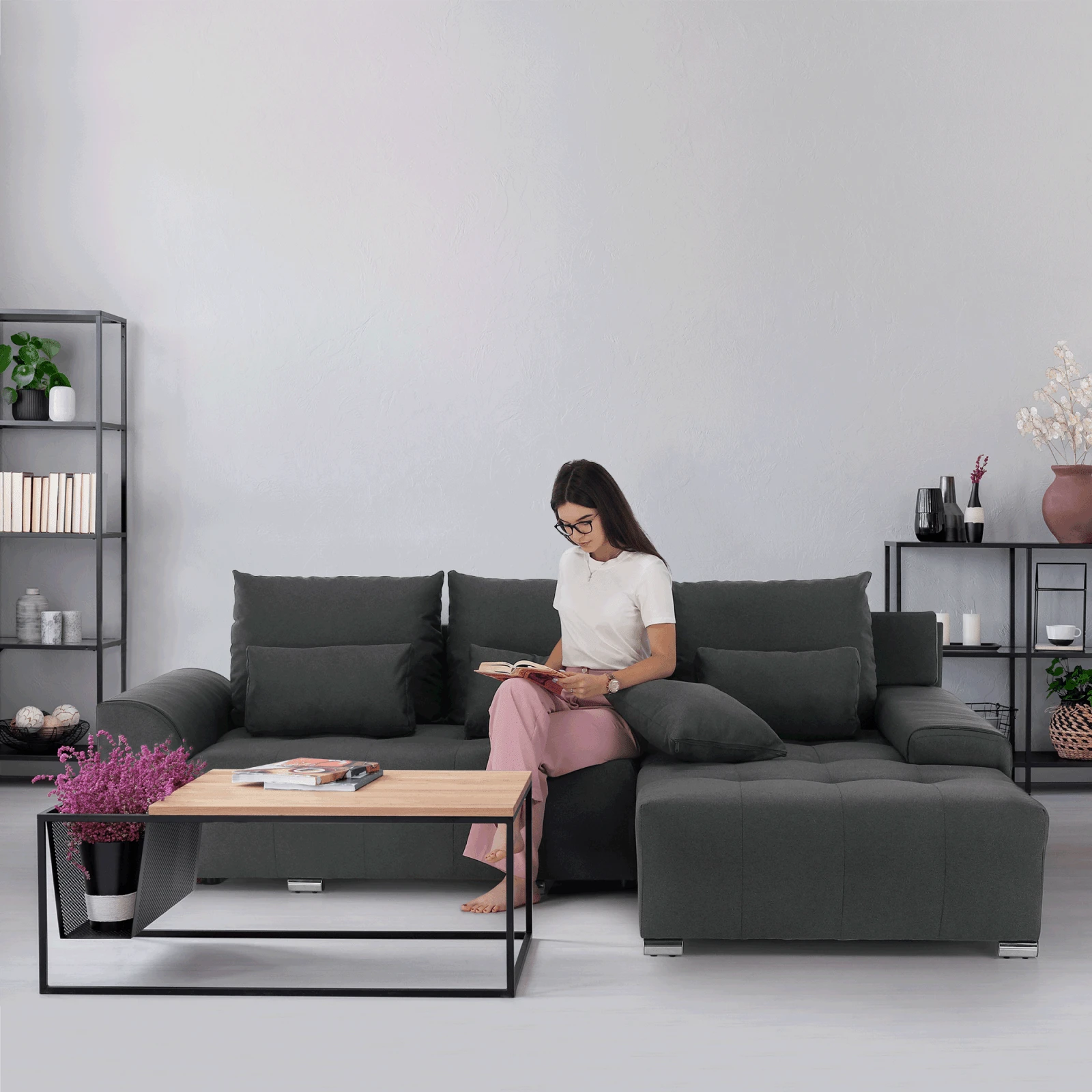 Canapea universala, gri inchis, DEVLIN