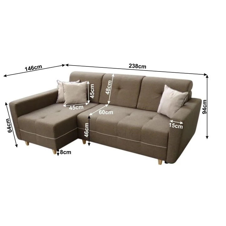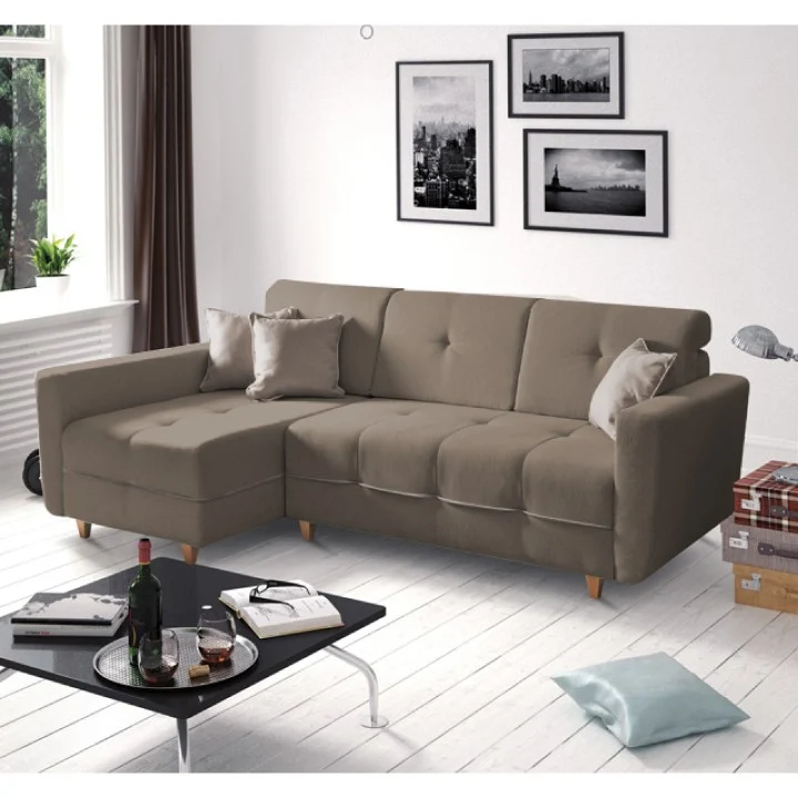 Descriere: Colţar tapiţat extensibil, cu spaţiu de depozitare HAKAN
