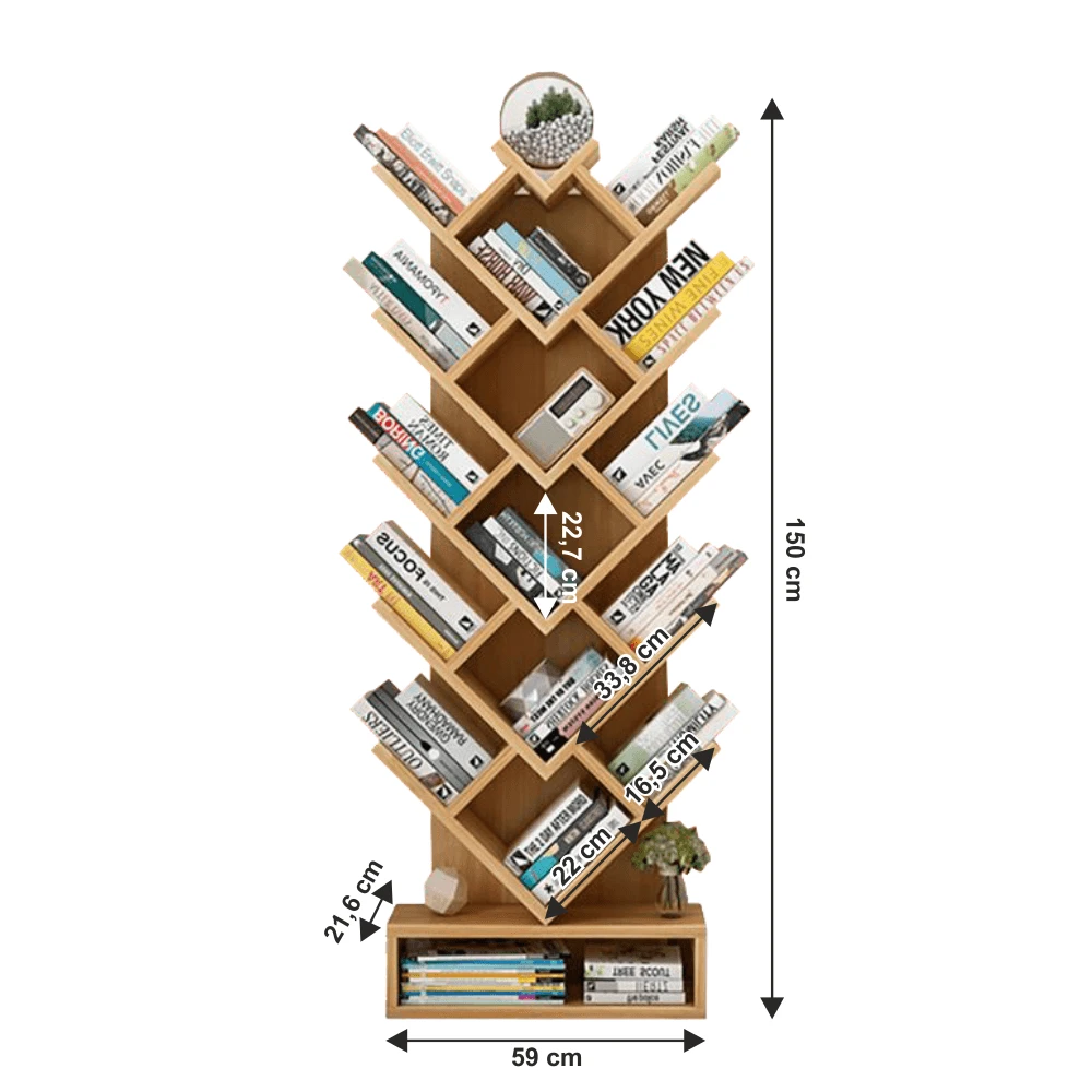 Cu o construcție solidă și dimensiuni optimizate, 59 x 150 x 21,6 cm, etajera se integrează perfect chiar și în spațiile mai restrânse. Cele mai multe rafturi pot fi folosite pentru depozitarea cărților, a obiectelor decorative sau a plantelor, oferind un echilibru între funcționalitate și design.