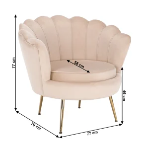 Fotoliu in stil Art-deco, catifea Velvet bej/crom auriu, NOBLIN NEW