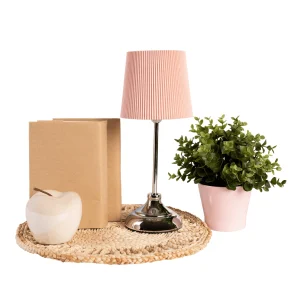 Descriere: Lampa de masa, din metal / material textil roz, GAIDEN