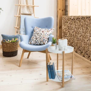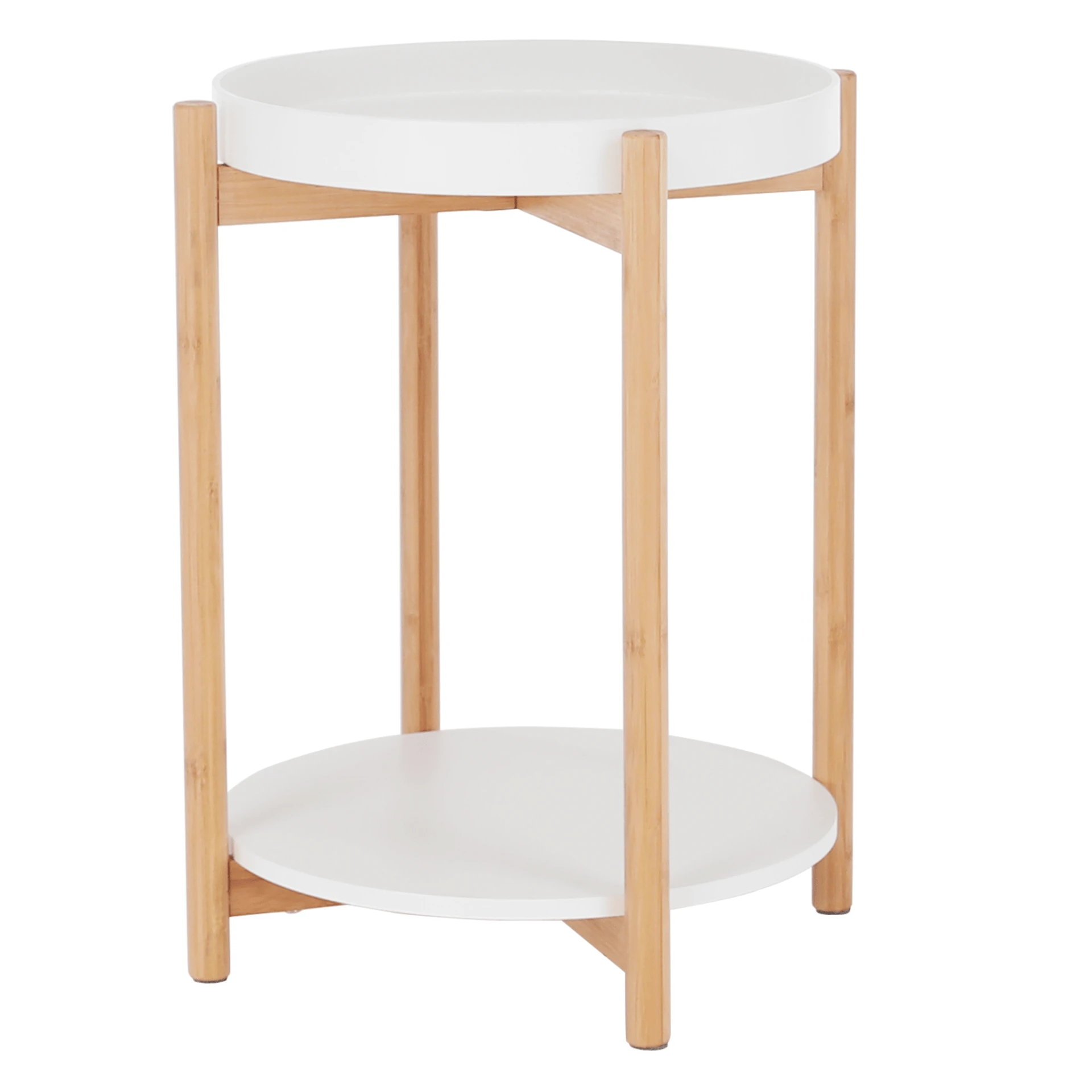 Descriere: Masa laterala cu tava detasabila, alba / naturala, KABRA