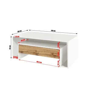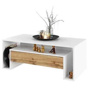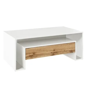 Masuta de cafea are un sertar precum si un spaţiu de depozitare deschis.