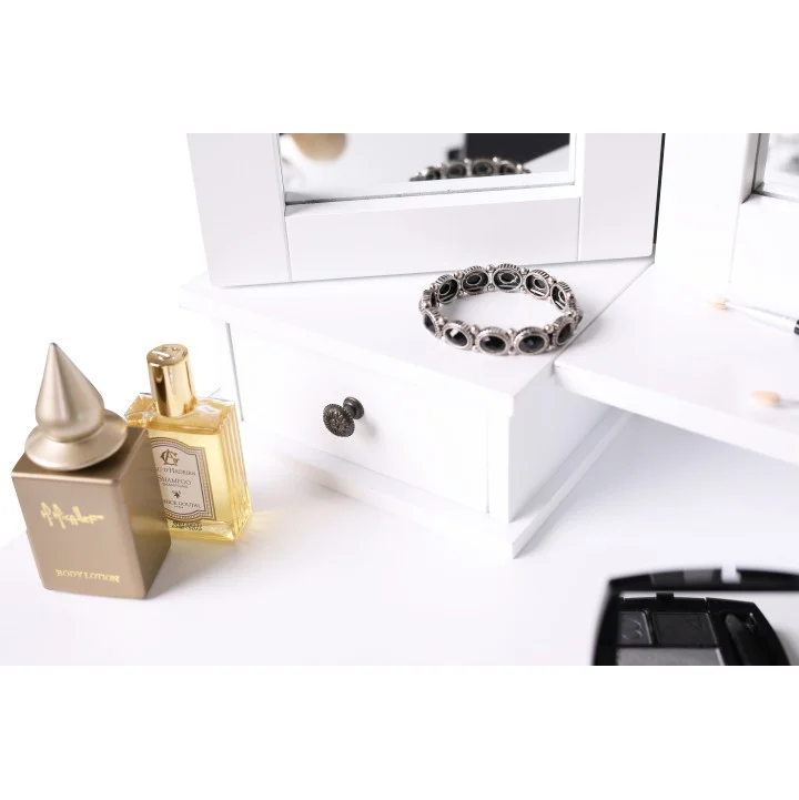 Aceasta masuta, destinatata doamnelor si domnisoarelor, reprezinta locul ideal pentru o clipa de ragaz si rasfat. Masuta este utila si practica, nu ocupa mult spatiu in camera dumneavoastra.