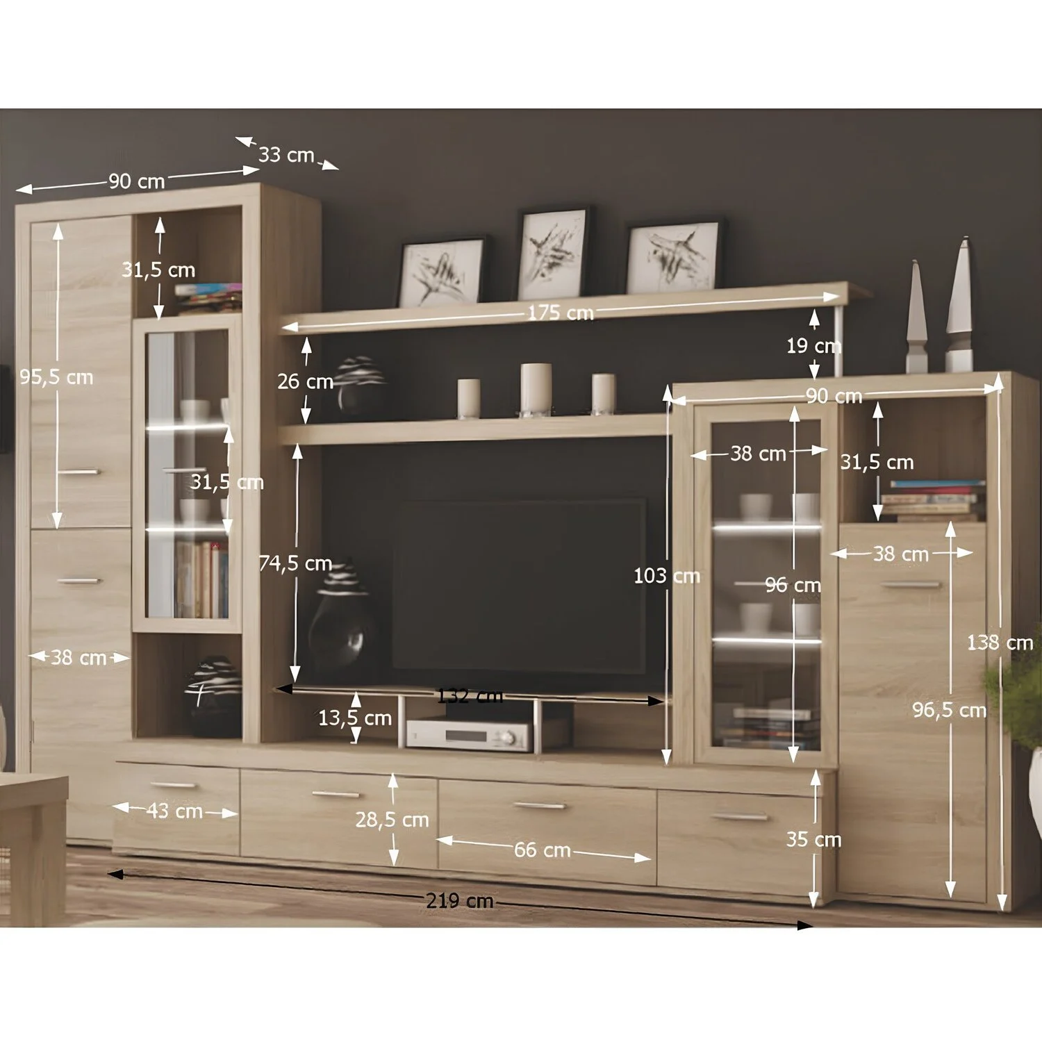 Dimensiunile spaţiului pentru TV (LxI): 132×74,5 cm