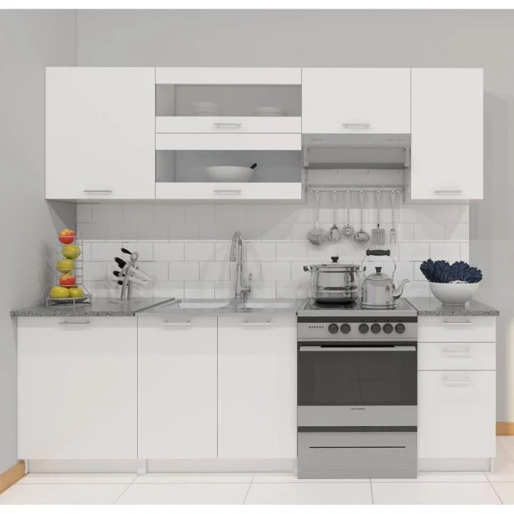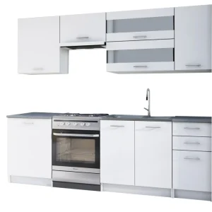 Inclus blatul de lucru, exceptie – dulapul pentru chiuveta + dulapurile sectoriale sunt livrate fara blatul de lucru.