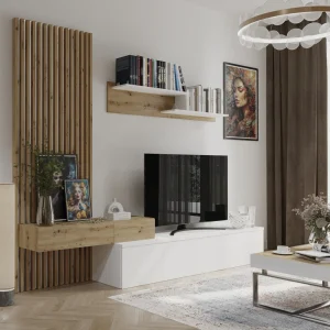 Mobilier living, alb / stejar Artisan, REBEKA PLUS