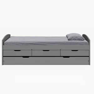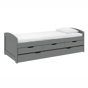 Pat cu pat suplimentar extensibil, gri, lemn, 90×200 cm, MARINELLA NEW
