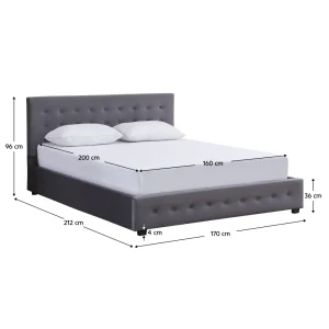 Pat cu spațiu de depozitare 160×200 gri este livrat cu grătar cu lamele și este compatibil cu o saltea recomandată de 20 cm grosime. Designul tapițat și construcția atent realizată asigură un nivel ridicat de confort și susținere corectă în timpul somnului.