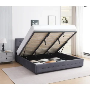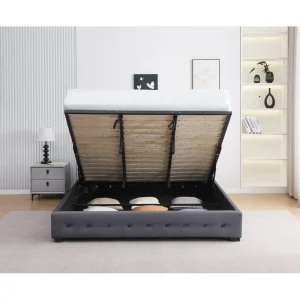 Un avantaj major al acestui pat este compartimentul generos integrat sub saltea, ideal pentru depozitarea lenjeriilor, pilotelor sau altor articole voluminoase. Grătarul batant facilitează accesul rapid și ușor la spațiul de depozitare.
