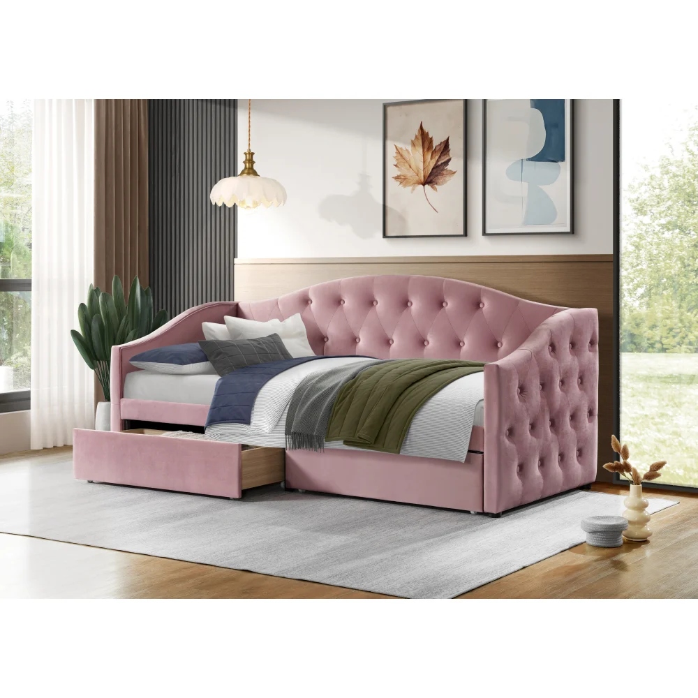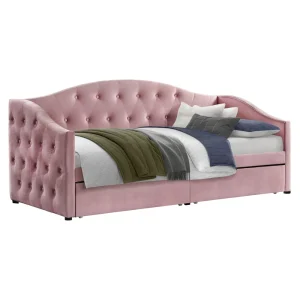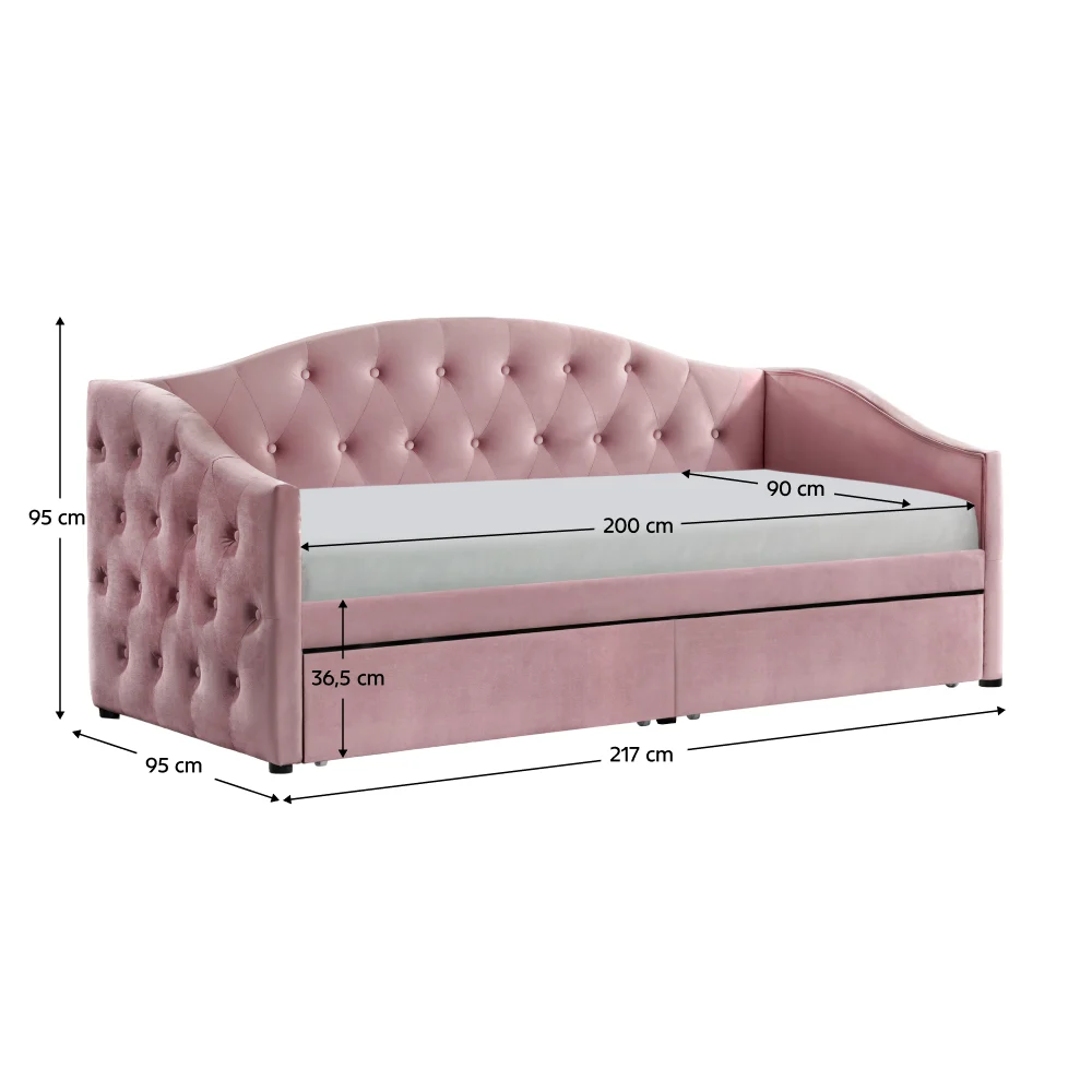 Pat cu spaţiu de depozitare, 90×200, ţesătură Velvet roz, ZASKA