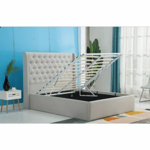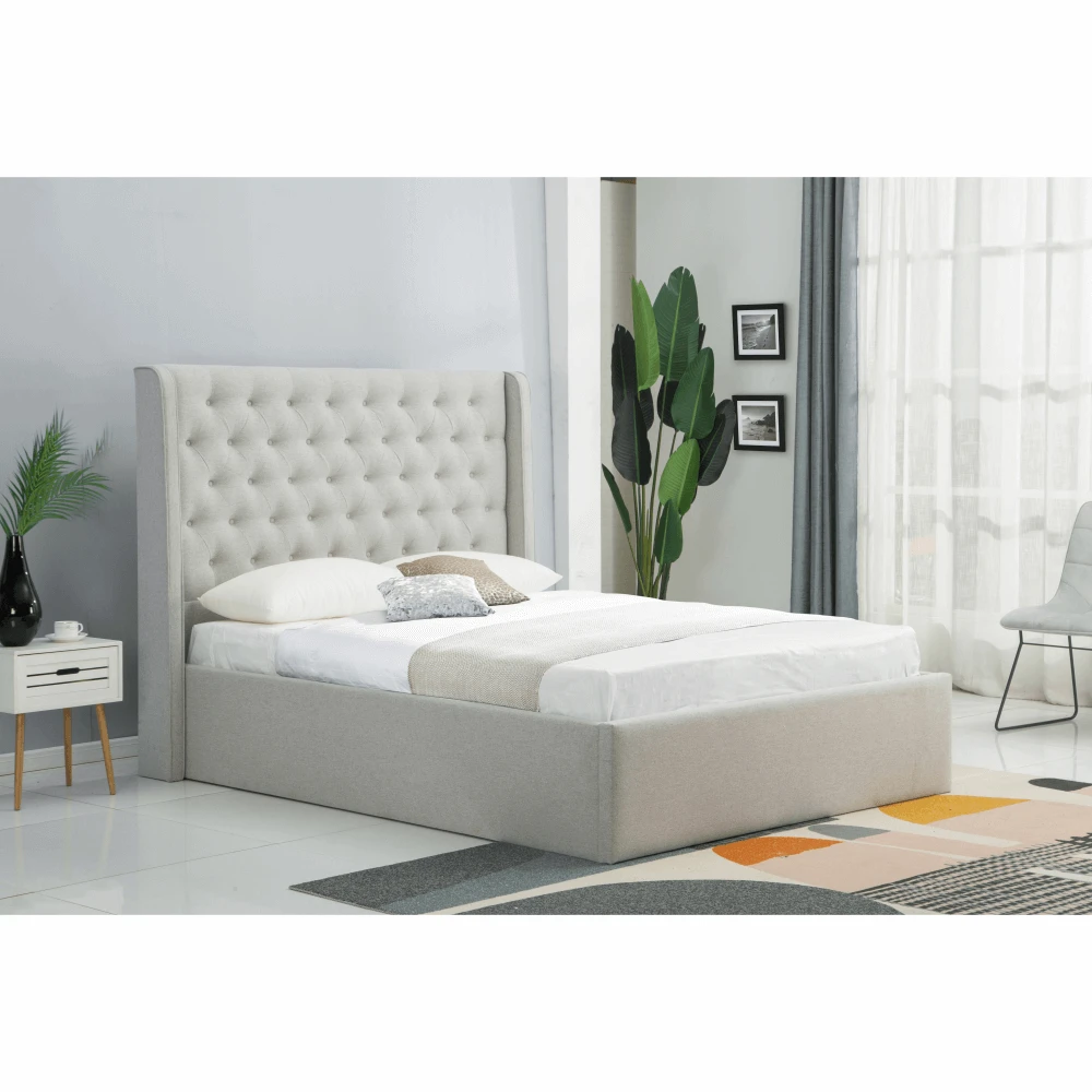 Descriere: Pat, gri deschis, 160×200 cm, JOSIE