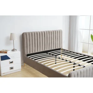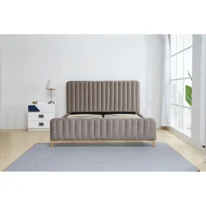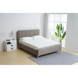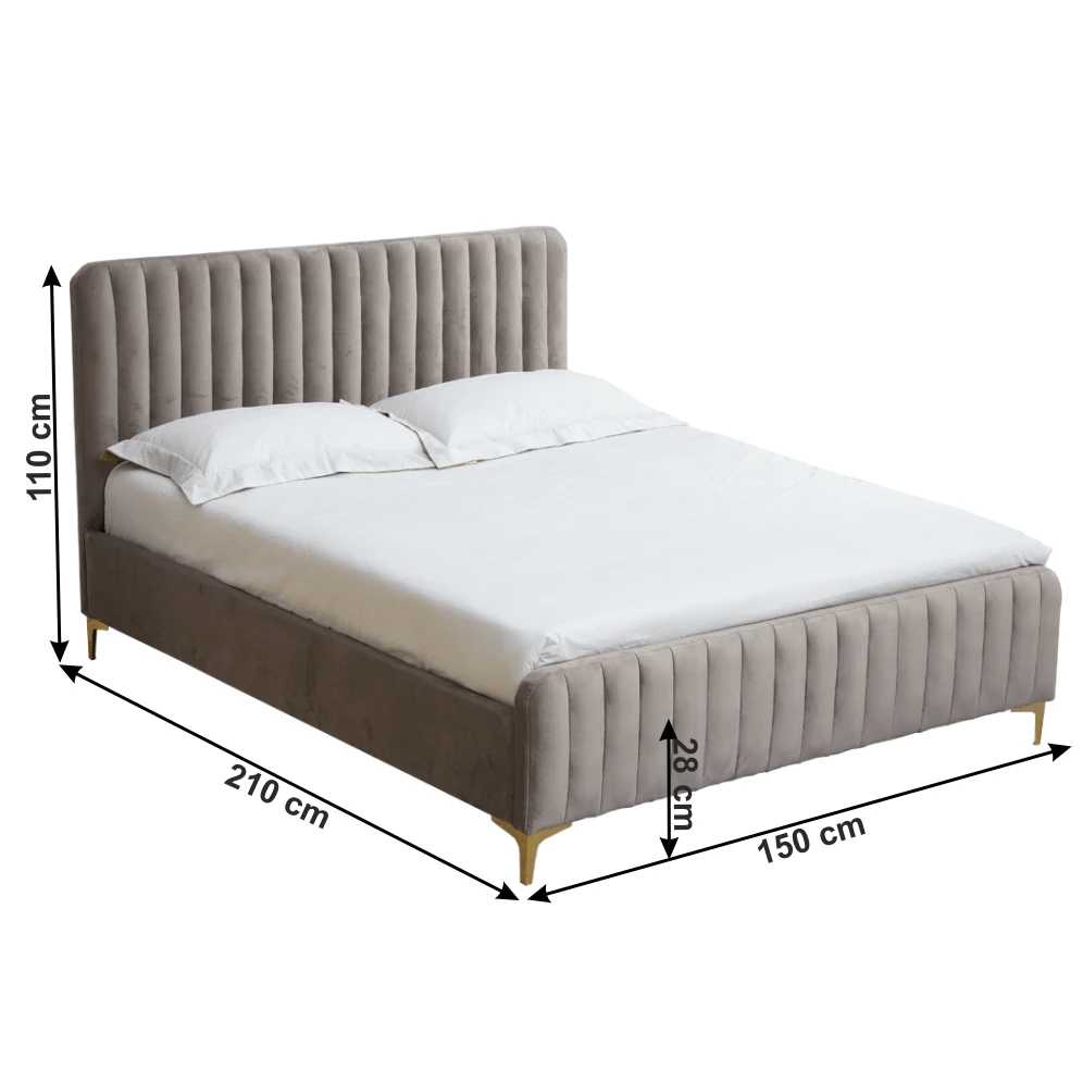 Descriere: Pat, gri maro Taupe/gold crom auriu mat, 140×200 cm, KAISA