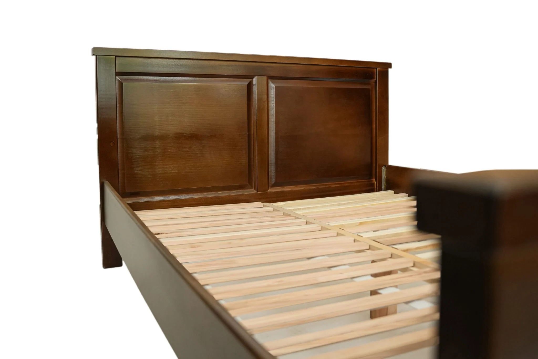 Lemnul de fag este cunoscut pentru durabilitatea sa excepțională și aspectul plăcut, iar finisajul lacuit evidențiază frumos textura și culoarea caldă a nuanței de nuc. Este o alegere care aduce un plus de stil și rezistență spațiului tău de odihnă.