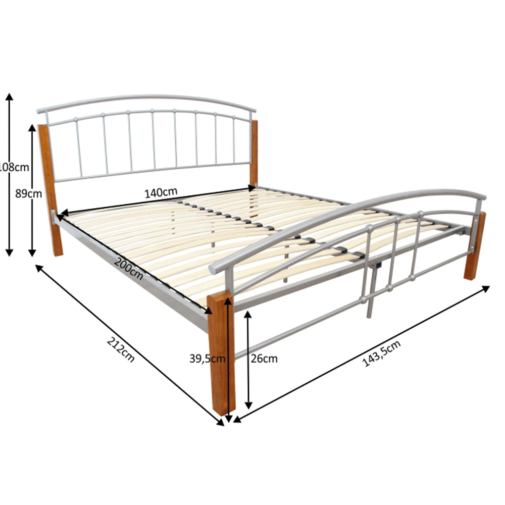 Pat matrimonial, lemn arin/metal argintiu, 140×200 cm, MIRELA