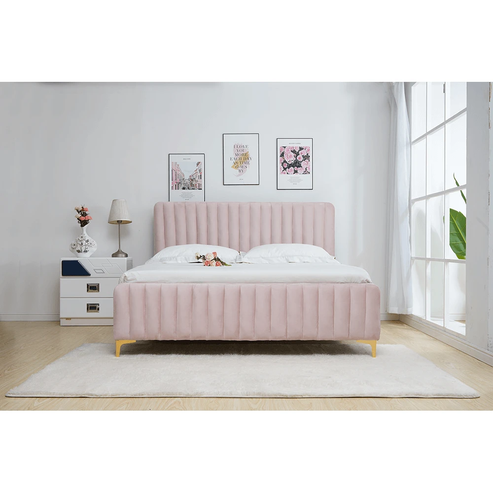 Descriere: Pat, roz/gold crom auriu mat, 140×200 cm, KAISA