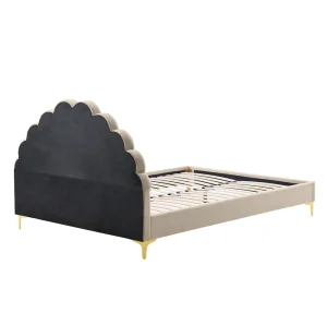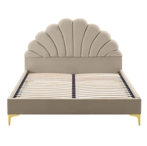 Acest pat tapițat impresionează prin tăblia sa decorativă, cu formă curbată și finisaj atent lucrat. Tapițeria din Velvet oferă un aspect sofisticat și o textură plăcută la atingere, contribuind la senzația de confort vizual și tactil. Nuanța neutră de bej permite integrarea ușoară a patului în dormitoare moderne, minimaliste sau clasice.