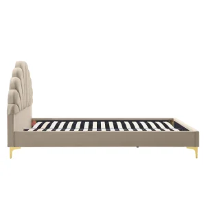 Pat tapitat, 160×200, ţesătură Velvet bej, ISADORA