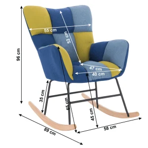 Descriere: Scaun balansoar design, patchwork albastru / verde, KEMARO