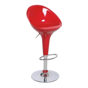 Acest scaun va fi punctul de atractie al locuintei dumneavoastra. Cu un design modern, scaunul este atent confectionat si confortabil atunci cand va relaxati. Are spatar, partea de sus este din plastic rosu iar partea inferioara este cromata.