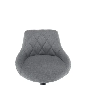 Scaunul are o husa din material textil iar partea inferioara este din metal.