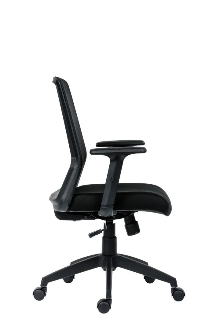Brațele reglabile, realizate din polipropilenă cu top PU moale, adaugă un plus de confort, iar baza piramidală din polipropilenă (diametru 660 mm) oferă stabilitate sporită. Rolele din nylon (diametru 50 mm) asigură mobilitate ușoară pe orice suprafață.