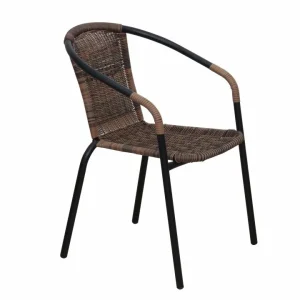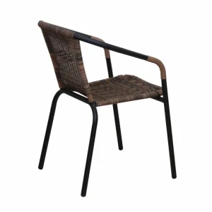 Acest scaun este special conceput pentru a fi folosit in gradina, confectionat din răchită sintetică, iar picioarele din metal. Poate sustine o greutate de pana la 150 kg.