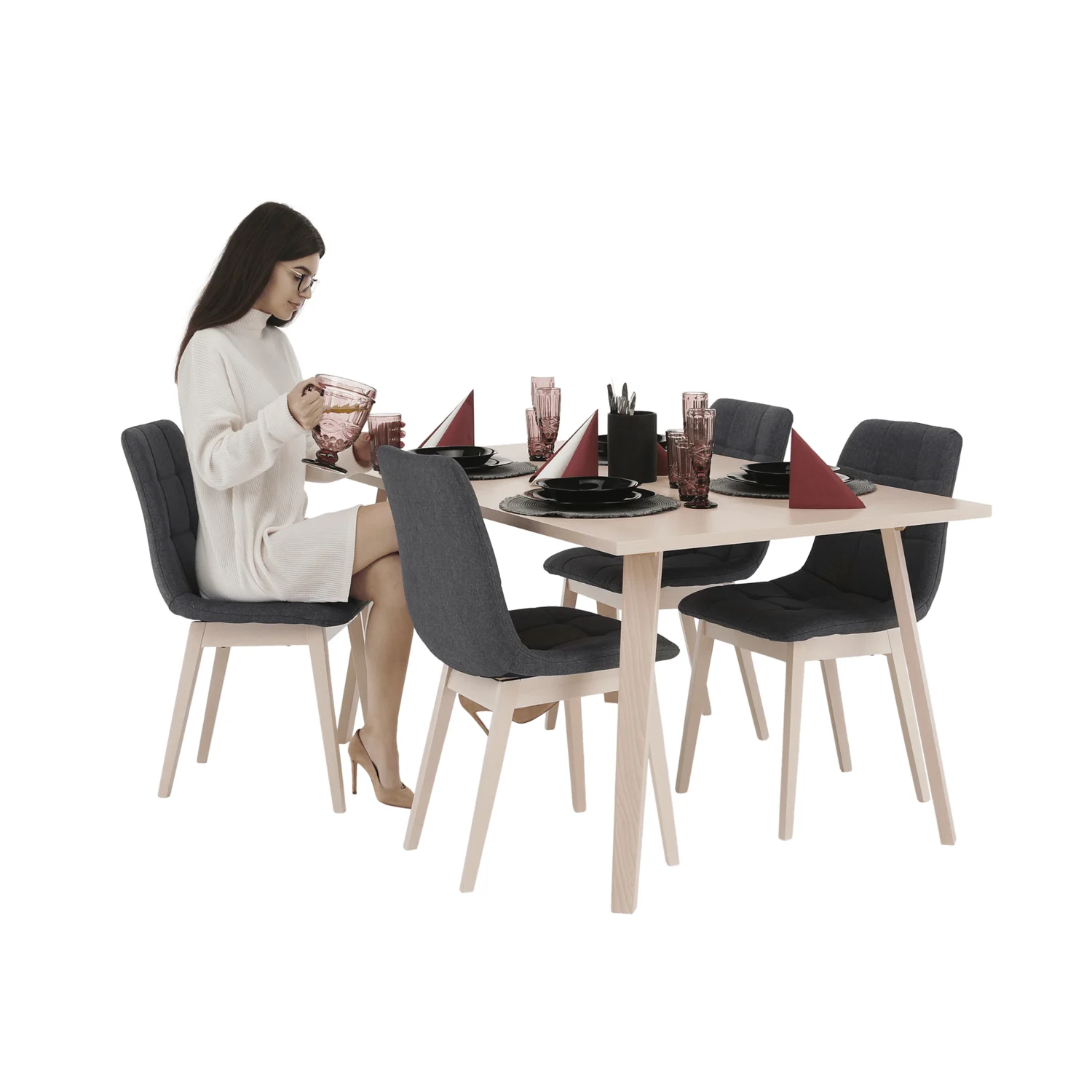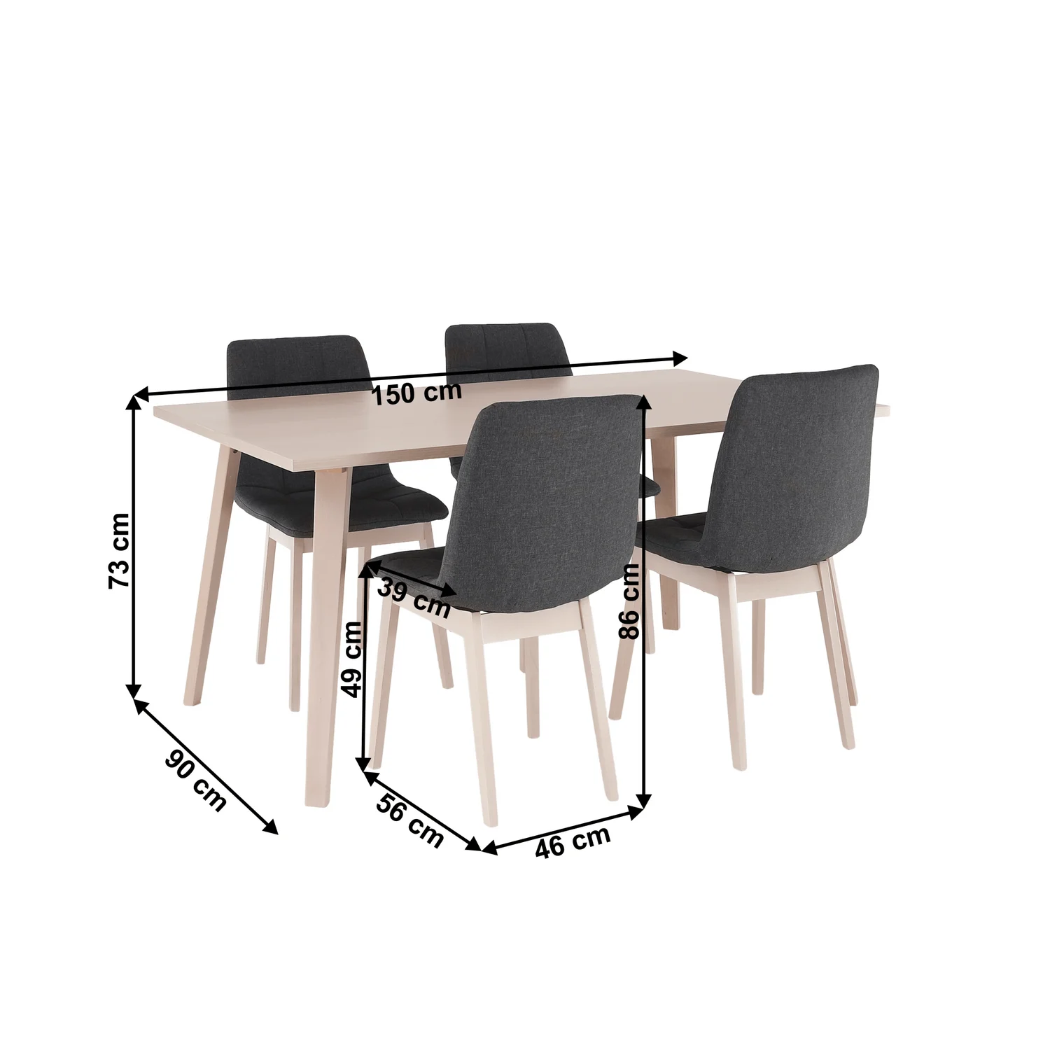 Descriere: Set dining, fag deschis / tesatura gri, GALIO 1 + 4